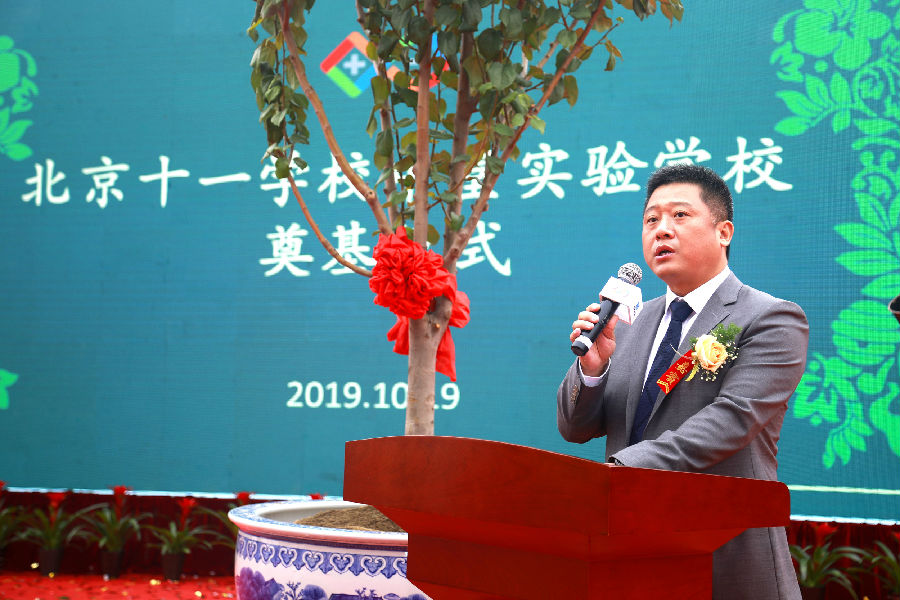 隨后,北京嘉源置業投資有限公司胡陸軍董事長發表致辭。他指出,十一學校作為唯一一所以共和國國慶日命名的學校,不僅繼承了光輝的歷史榮譽,更與時代同行,跟隨改革創新的腳步,走在教育發展的前列。預祝十一學校中堂實驗中學建設工程圓滿成功!學校早日建成!