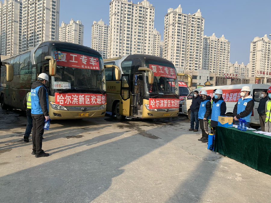 為保證農(nóng)民工盡快安全復(fù)工復(fù)產(chǎn),公司萬達(dá)配建住宅1B項(xiàng)目在當(dāng)?shù)卣С窒?,“點(diǎn)對點(diǎn)”包車接運(yùn)農(nóng)民工返崗復(fù)工,目前,首批61名工人已乘專車安全抵達(dá)項(xiàng)目。據(jù)悉,為保證安全,車輛在出發(fā)前要進(jìn)行全車消毒,并隨車配備體溫計(jì)、口罩、消毒紙巾、免洗洗手液、一次性手套等防疫物資。途中,乘車人員分散落座,項(xiàng)目工作人員隨車接運(yùn),做好車途中后勤保障工作,確保人員安全抵達(dá)。