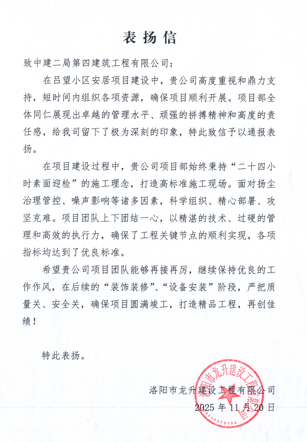 一起看看部分項目的表揚信吧