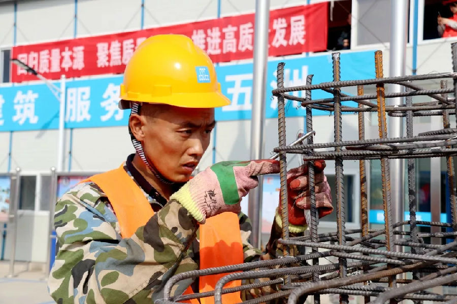 本次比賽采用在建筑工地現(xiàn)場操作的方式,具有實用性,并大大降低了比賽的成本。參賽團隊根據(jù)圖紙要求,在規(guī)定時間內(nèi)完成鋼筋綁扎,經(jīng)評委檢測后,比賽成果將成為項目的一部分來直接使用。經(jīng)過一個半小時的精彩角逐,最終有6支代表隊脫穎而出。