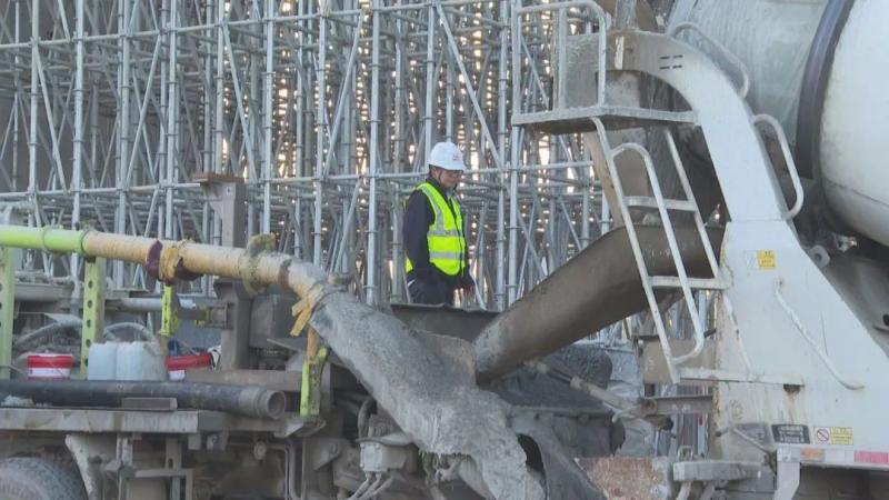 據了解,本次采用支架現澆法進行施工,混凝土方量868.88立方,整體采用盤扣支架體系一次澆筑。由于內部鋼筋較多,施工環(huán)境狹小,增加了工作難度。為保證連續(xù)梁的整體質量,該工程準備工作繁復,需多次對其進行測量避免澆筑施工時影響整體穩(wěn)定性。