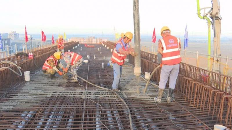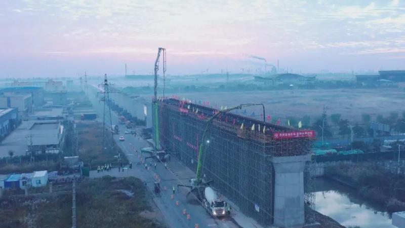 “我們承建的大豐港特大橋全長17.949公里,目前項目首個支架現澆梁一次性澆筑已完成,連續(xù)梁澆筑的完成標志著大豐港鐵路支線施工建設進入新的階段。”大豐港鐵路支線工程3標經理部現場負責人陳甫軍告訴記者。