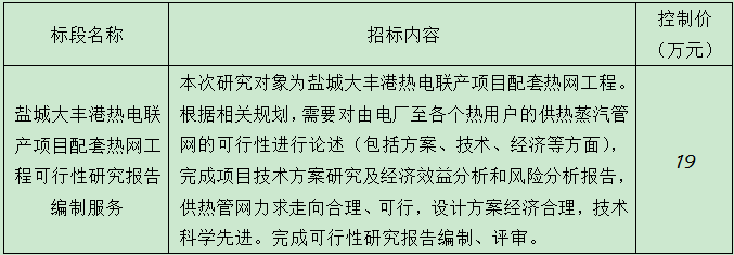2. 項目名稱:鹽城大豐港熱電聯產項目配套熱網工程可行性研究報告編制服務。