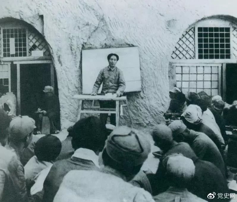 1938年4月,毛澤東在魯迅藝術(shù)學(xué)院講演。