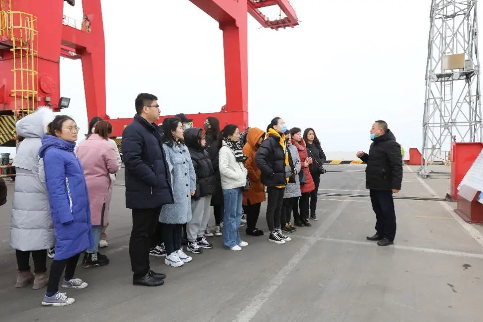濱海港區(qū)單位女職工在生產(chǎn)經(jīng)營(yíng)部工作人員的帶領(lǐng)下,學(xué)習(xí)門機(jī)進(jìn)行裝卸作業(yè),了解碼頭從船舶靠岸的前期準(zhǔn)備到靠泊后的裝卸作業(yè)的全部流程。