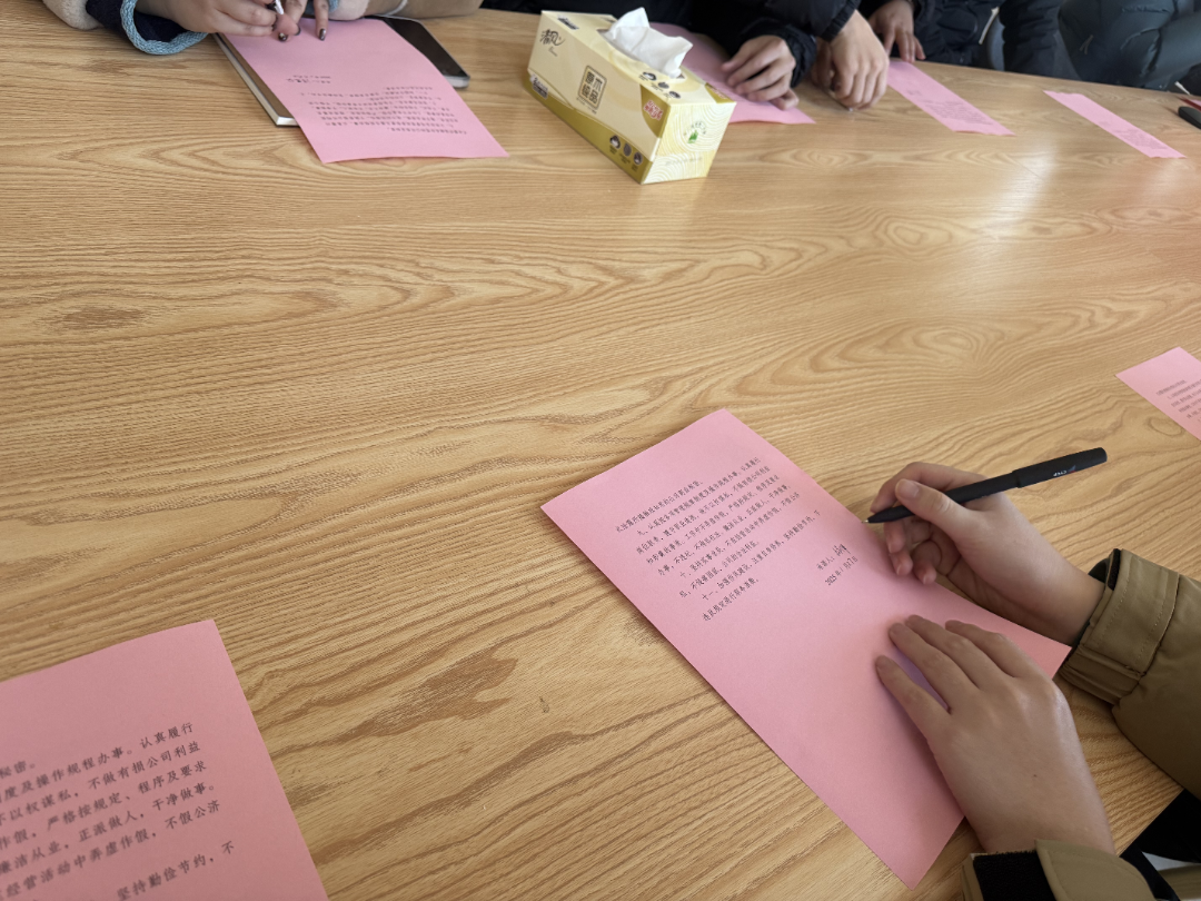 青年們現(xiàn)場簽訂廉潔從業(yè)書并為每位青年送上廉潔日歷及戒尺,進(jìn)一步強(qiáng)化青年們廉潔自律思想意識,進(jìn)一步提醒青年們把廉潔承諾轉(zhuǎn)化為工作動(dòng)力和成效,做遵紀(jì)守法、嚴(yán)格自律的表率,營造風(fēng)清氣正的干事氛圍。
