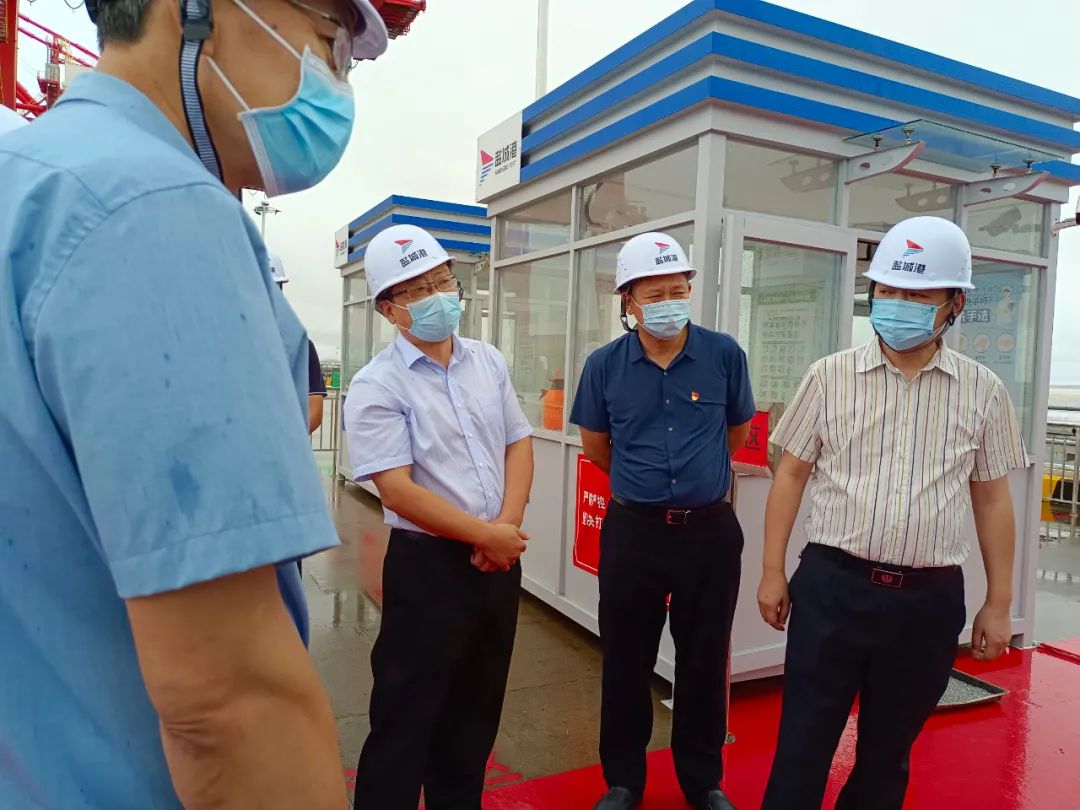 9月29日,省水路口岸疫情防控專項督查組成員、南京海關衛生檢疫處一級調研員張純率隊前往鹽城港大豐港區,就涉外口岸疫情防控工作進行督導檢查。市交通運輸局黨委委員、副局長趙飛,集團黨委委員、董事、副總經理陳正華,鹽城海關、鹽城出入境邊檢站相關負責同志參加。