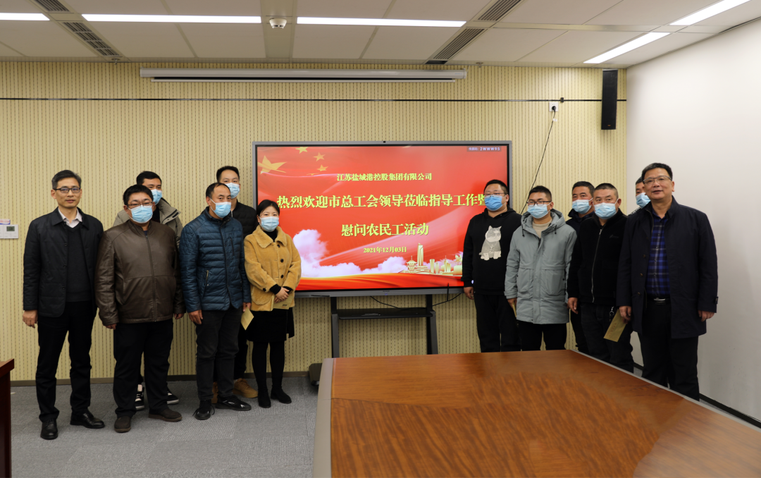 12月3日,市總工會副主席戴紅軍一行來集團,看望慰問在崗農民工。集團黨委委員、董事、副總經理、工會聯合會主席夏立新等參加。