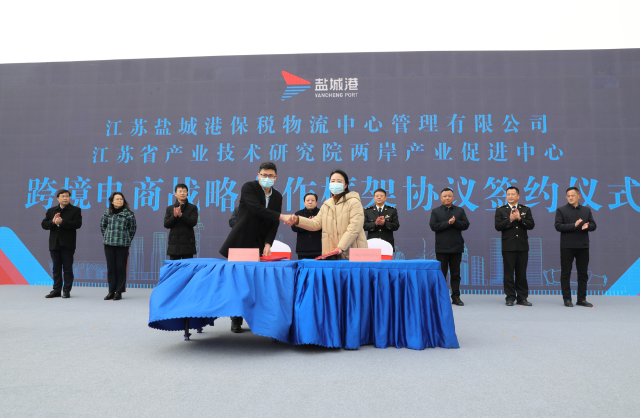 12月25日,江蘇鹽城港跨境電商“首單”啟動(dòng)暨鹽城港保稅物流中心與江蘇省產(chǎn)業(yè)技術(shù)研究院兩岸產(chǎn)業(yè)促進(jìn)中心跨境電商戰(zhàn)略協(xié)議簽約儀式,在鹽城港保稅物流中心隆重舉行。集團(tuán)黨委書記、董事長(zhǎng)、總經(jīng)理周正雄,鹽城海關(guān)副關(guān)長(zhǎng)李健,市商務(wù)局副局長(zhǎng)喬振,市國(guó)資委副主任成友貴,集團(tuán)黨委委員、紀(jì)委書記周旭東,集團(tuán)總經(jīng)理助理孫永峰以及大豐區(qū)相關(guān)部門負(fù)責(zé)同志出席啟動(dòng)儀式并鑒簽。集團(tuán)黨委委員、董事、副總經(jīng)理夏立新主持活動(dòng)。
