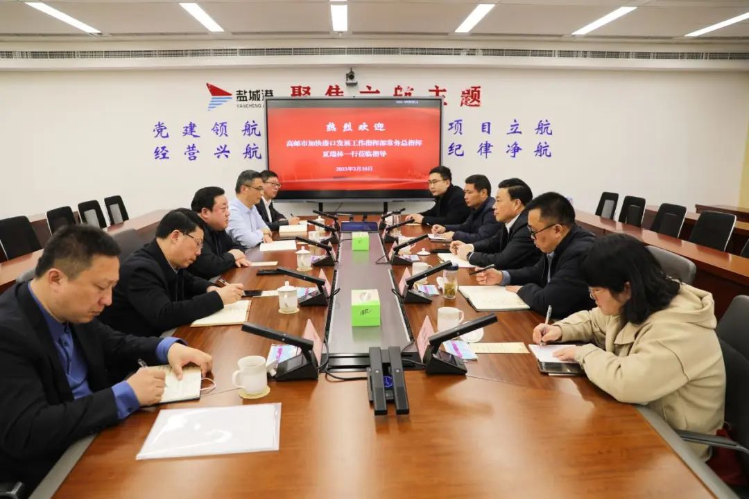 周正雄對夏瑞林一行的到訪表示歡迎,并介紹了鹽城港相關(guān)情況。他說,2020年,市委、市政府審時度勢,緊抓新一輪江蘇沿海開發(fā)契機(jī),將港口建設(shè)作為全市向海發(fā)展的重要支撐點(diǎn),成建制并入市域沿?!耙桓鬯膮^(qū)”和內(nèi)河港區(qū),實(shí)現(xiàn)海河聯(lián)運(yùn)一體化發(fā)展格局。集團(tuán)成立以來,按照各港區(qū)的發(fā)展定位,實(shí)現(xiàn)錯位發(fā)展,有效提升了港口資源資產(chǎn)效益,并于2021年首次躋身全國億噸大港行列,2022年貨物吞吐量和集裝箱增幅位列全國54個沿海港口的第1和第2位。當(dāng)前,集團(tuán)積極策應(yīng)淮河入海水道改航道及鐵路支線開通等重大交通基礎(chǔ)設(shè)施建設(shè)機(jī)遇契機(jī),緊扣“十年磨一劍”“五年打基礎(chǔ)”工作要求,將淮河流域及大運(yùn)河上游作為未來發(fā)展的重點(diǎn)領(lǐng)域和方向,全力培育未來的喂給港,為實(shí)現(xiàn)“彎道超車”打下堅(jiān)實(shí)基礎(chǔ)。內(nèi)河港區(qū)作為鹽城港的重要組成部分,圍繞打造中心港,按照“一港多點(diǎn)”的經(jīng)營方式,持續(xù)加強(qiáng)內(nèi)河碼頭的投資經(jīng)營,加快推進(jìn)內(nèi)河港區(qū)與海港區(qū)的聯(lián)動發(fā)展,構(gòu)建更為完善的“公鐵水海”多式聯(lián)運(yùn)集疏運(yùn)體系,著力推動貨物運(yùn)輸向港口聚集,為鹽城港發(fā)展打好基礎(chǔ)。鹽城與高郵地緣相近、人文相親,同時高郵港也是大運(yùn)河干道重要的樞紐港口,未來發(fā)展?jié)摿薮螅Mp方進(jìn)一步加強(qiáng)溝通交流,有效實(shí)現(xiàn)航運(yùn)資源互補(bǔ),實(shí)現(xiàn)互利共贏、共同發(fā)展。