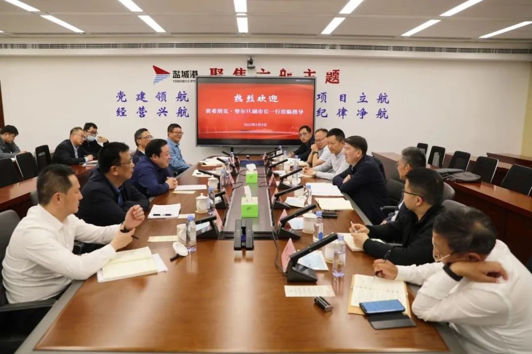 黃希別克·努爾旦在認(rèn)真聽(tīng)取相關(guān)情況匯報(bào)后,對(duì)鹽城港集團(tuán)近年來(lái)取得的各項(xiàng)成績(jī)表示肯定。他說(shuō),鹽城港集團(tuán)組建以來(lái),緊跟市委、市政府決策部署,堅(jiān)持高站位謀劃,發(fā)展理念超前,規(guī)劃精準(zhǔn)、思路清晰、舉措得力,各項(xiàng)事業(yè)發(fā)展成效明顯,貨物吞吐量、集裝箱裝運(yùn)量等主要指標(biāo)增速在全國(guó)名列前茅,充分發(fā)揮了國(guó)有資本對(duì)全市經(jīng)濟(jì)社會(huì)發(fā)展的帶動(dòng)引領(lǐng)作用,為我市高質(zhì)量發(fā)展作出了重要貢獻(xiàn)。港口作為城市發(fā)展的重要部分,具有獨(dú)特的開(kāi)放優(yōu)勢(shì)和區(qū)域優(yōu)勢(shì),為城市創(chuàng)造良好的發(fā)展環(huán)境。鹽城港地處淮河生態(tài)經(jīng)濟(jì)帶、江蘇沿海發(fā)展、長(zhǎng)三角一體化“一橫一縱一圈”國(guó)家戰(zhàn)略機(jī)遇疊加地帶,同時(shí)也是淮河入海門(mén)戶,區(qū)位優(yōu)勢(shì)明顯,擁有廣闊的發(fā)展前景。希望鹽城港進(jìn)一步聚焦主責(zé)主業(yè),以強(qiáng)有力的工作合力不斷加強(qiáng)河海聯(lián)運(yùn)布局統(tǒng)籌,持續(xù)深耕淮河流域貨源市場(chǎng),加快推進(jìn)中歐接續(xù)班列開(kāi)通前的各項(xiàng)籌備工作,著力強(qiáng)化內(nèi)外循環(huán)銜接,加快融入“一帶一路”,為全市港航事業(yè)高質(zhì)量發(fā)展貢獻(xiàn)更多鹽城港力量。