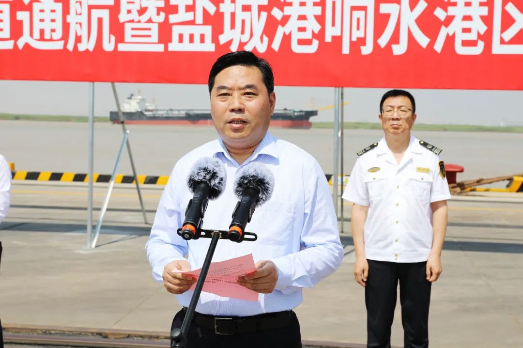市交通運輸局黨委書記葛春寬,鹽城海事局局長程欣,鹽城出入境邊防檢查站站長李興華,鹽城海關二級高級主辦李健,鹽城港集團黨委副書記、董事、總經理陸帥出席活動。相關單位及部門負責同志,船貨代公司及相關企業(yè)代表等參加。