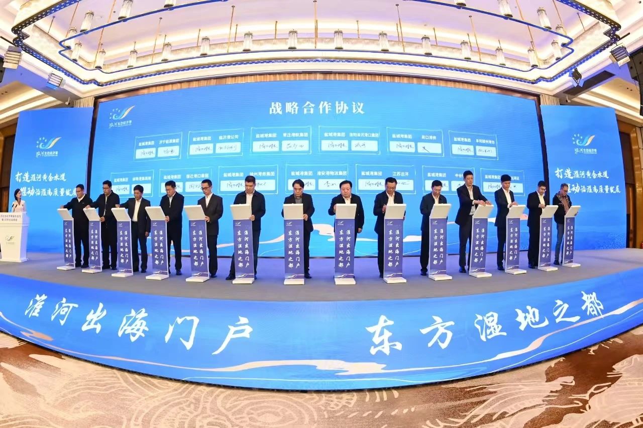 會上,與會人員觀看了淮河生態經濟帶協同發展成果專題片,聽取了淮河生態經濟帶城市合作工作推進情況、淮河生態經濟帶市際合作協議及重點合作事項。交通運輸部規劃研究院專家圍繞“淮河水運啟新程 航運藍圖展未來”作主旨演講。29個成員市(縣)負責同志共同簽署了《淮河生態經濟帶生態環境保護市際合作協議》《淮河生態經濟帶水運高質量發展市際合作協議》《淮河生態經濟帶綠色低碳發展市際合作協議》,淮河沿線港航、物流企業等單位與鹽城港集團簽署了戰略合作協議。沿淮成員城市(縣)長作交流發言?;春由鷳B經濟帶城市合作第六次市長會商會承辦城市安徽省亳州市向沿淮市(縣)發出盛情邀請。