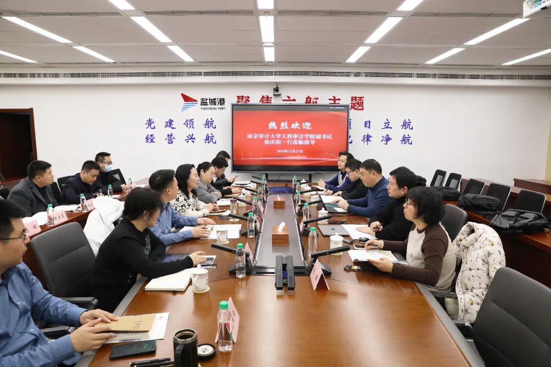 袁欣對徐慶陽一行的到來表示歡迎,并介紹了鹽城港相關情況。她說,自集團成立以來,集團高度重視依法治企、合規(guī)管理工作,始終將審計工作擺在重要位置,扎實推動“五大監(jiān)督”“雙體檢”等創(chuàng)新舉措,不斷提高風險防范能力,著力提升合規(guī)管理水平。當前,鹽城港充分發(fā)揮審計工作“找問題、明方向”作用,對重大項目開展“回頭看”,確保手續(xù)齊全、流程規(guī)范,依法合規(guī)推進項目建設。同時,集團聚焦人才引進,不斷擴充審計人才庫,為未來健康可持續(xù)發(fā)展提供堅實人才支撐。南京審計大學作為審計類人才的智庫和搖籃,在人才培養(yǎng)等方面擁有專業(yè)的師資力量,懇請南京審計大學在財務、審計、法務、融資專業(yè)人才培養(yǎng)等方面給予鹽城港更多支持,為鹽城港一體化融合高質(zhì)量發(fā)展注入新活力。