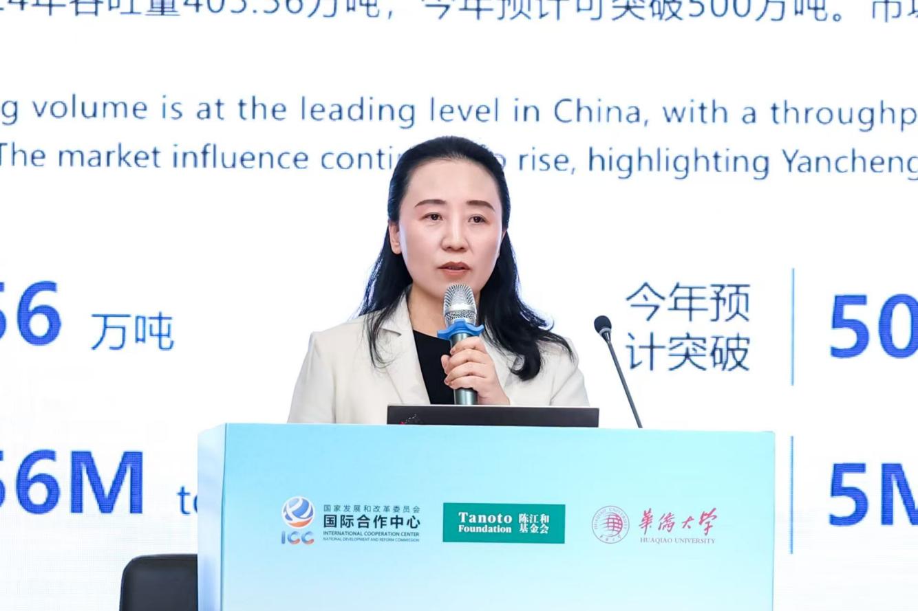 演講中,袁欣指出,自成立以來,鹽城港始終致力于深度融入“一帶一路”建設(shè),不斷拓寬與沿線國家的貿(mào)易合作領(lǐng)域,成功開辟棕櫚油業(yè)務(wù)通道,有力推動商品車、化工原料等產(chǎn)品出口,保障中歐(亞)接續(xù)班列穩(wěn)定運(yùn)營。面對全球經(jīng)貿(mào)格局的深刻變革,她指出,鹽城港將秉持開放包容、合作共贏理念,積極與“一帶一路”沿線國家攜手共進(jìn),共享港口建設(shè)與運(yùn)營管理的經(jīng)驗(yàn),創(chuàng)新多元化合作模式,共筑高效物流網(wǎng)絡(luò),提升跨境物流效率,推動各方在經(jīng)濟(jì)、技術(shù)等多個領(lǐng)域的協(xié)同發(fā)展,實(shí)現(xiàn)互利共贏的嶄新局面。