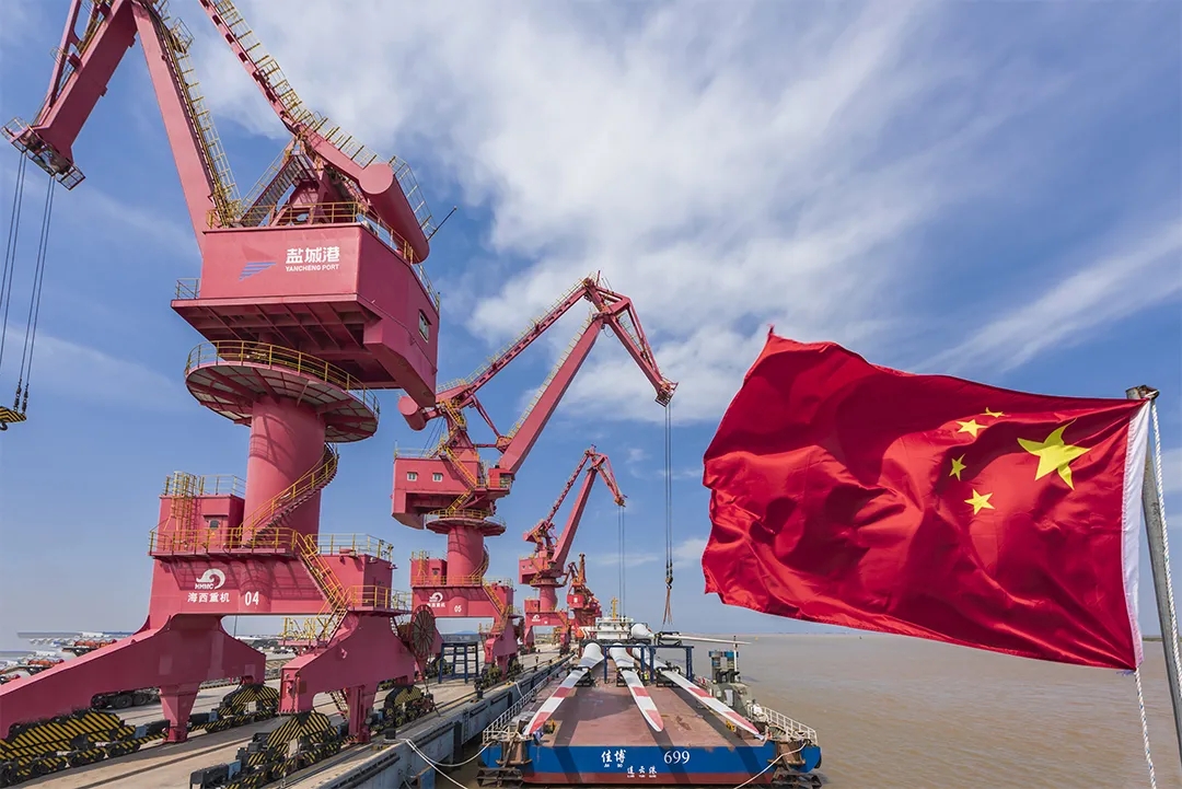 潮起東方,浩蕩無疆。海洋強國是中華民族走向復興的偉大戰略,海洋資源得天獨厚的鹽城迎來了黃金機遇。向海而立,弄潮而興,一場經略海洋的變革全面展開,一番系統整合的布局強勢推進。握指成拳以聚力,鹽城的港口人集聚成一個“軍陣”;掌運五指而發力,鹽城披荊斬棘鍛造出一支向海強兵。合眾港為一港,大豐港區、射陽港區、濱海港區、響水港區四海港蓄勢而發,阜寧港區、建湖港區、亭湖港區、東臺港區、步鳳港區五內河港環環相扣,鹽城港引航站正式加入大家庭,連天涯為比鄰,塔吊如林,巨輪如山,集裝箱“峰嶺疊彩”,長三角北翼航運樞紐雄姿英發,鹽城向海圖強的引擎轟天震響。