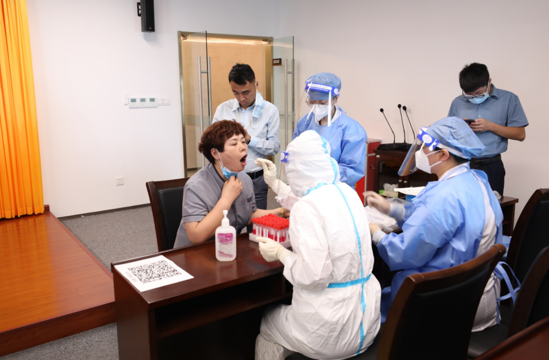 8月18日,先鋒社區(qū)黨員干部會同社區(qū)衛(wèi)生服務(wù)中心醫(yī)務(wù)工作者來集團(tuán),為集團(tuán)機(jī)關(guān)全體員工提供上門核酸檢測服務(wù),齊力共筑抗疫“長城”。
