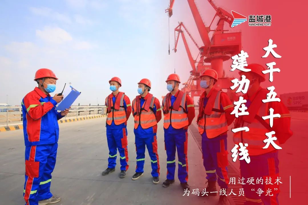 在射陽港區的辦公場所和作業區,“50天大比武”活動的宣傳標語隨處可見,廣大干部員工以“團結精進、務實創新、開放包容、追求卓越”的精神克服各種困難,以高昂的工作狀態,苦干實干巧干,展開了一場“我拼搏、我努力、沖刺50天、再創新業績”的全員會戰大比拼,全力以赴打好、打贏全年收官之戰。