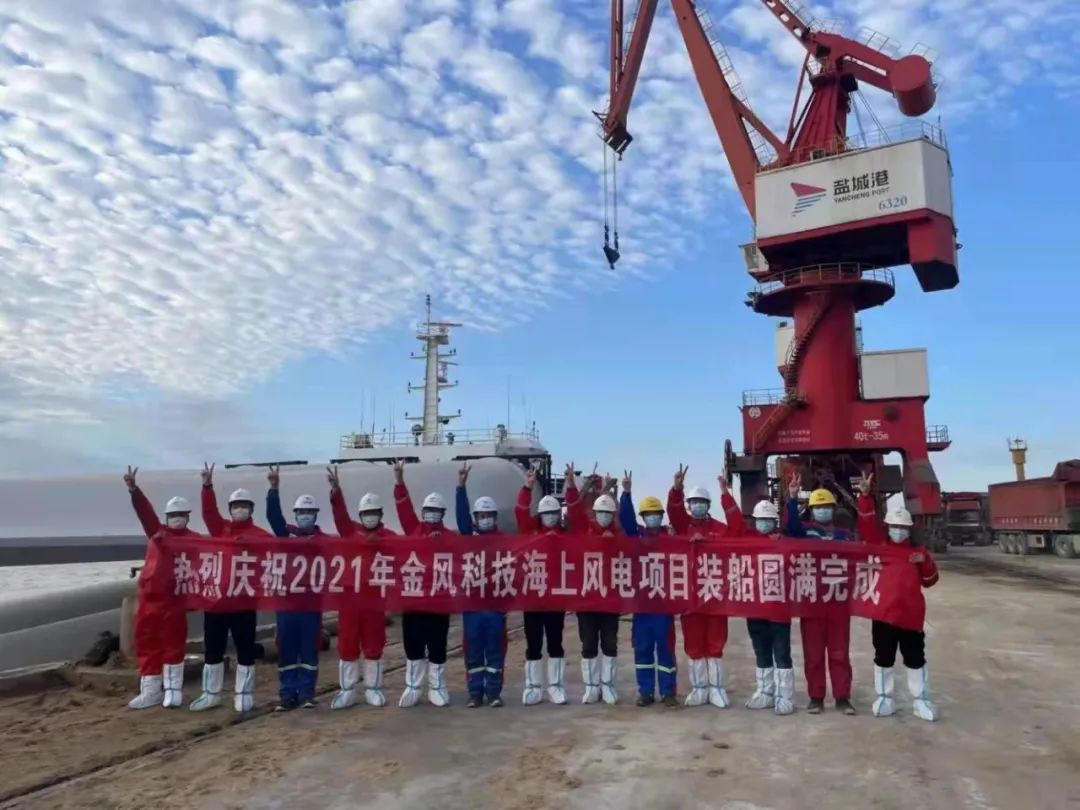 11月28日上午,隨著最后2套90米風電葉片被緩緩吊起,平穩裝上遠瑞159輪,這意味著鹽城港大豐港區港口公司2021年金風科技海上風電項目裝船任務圓滿完成。本年度,港口公司合計完成金風科技海上風電項目風電葉片吊裝148套,735492立方,累計裝船94條。