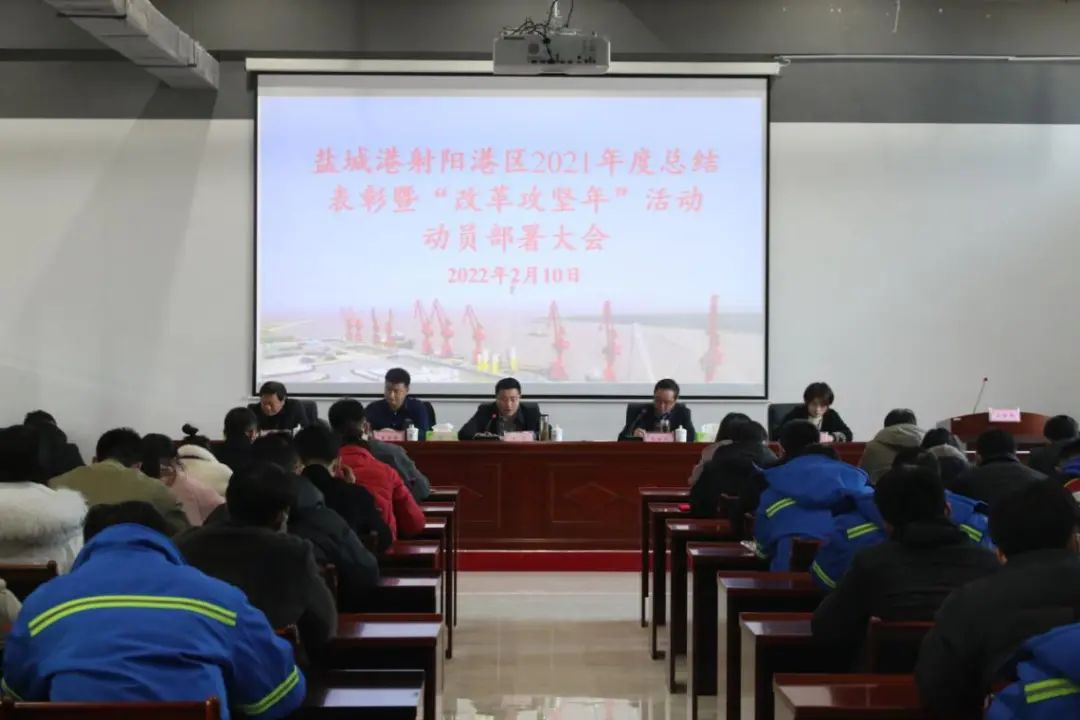 為貫徹落實鹽城港集團“改革攻堅年”活動動員大會精神,全面加快推進年度工作目標落實,2月10日上午,射陽港區召開落實集團“改革攻堅年”活動動員大會精神暨2022年工作部署會議,港區領導班子、機關、風電裝備進出口港公司全體員工出席會議。