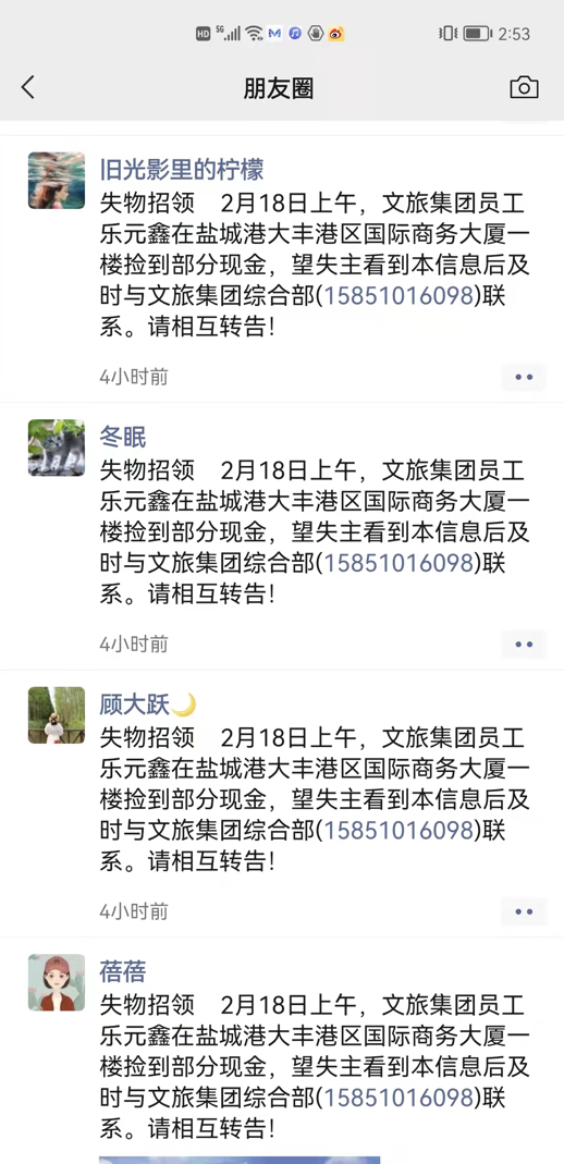 “看到微信朋友圈滿屏的失物招領(lǐng)信息,我才發(fā)現(xiàn)原來是我自己的錢丟了,真是太感謝了。”這是近日,一位在大豐港區(qū)成功通過微信朋友圈找回丟失現(xiàn)金的失主發(fā)出的感慨。
