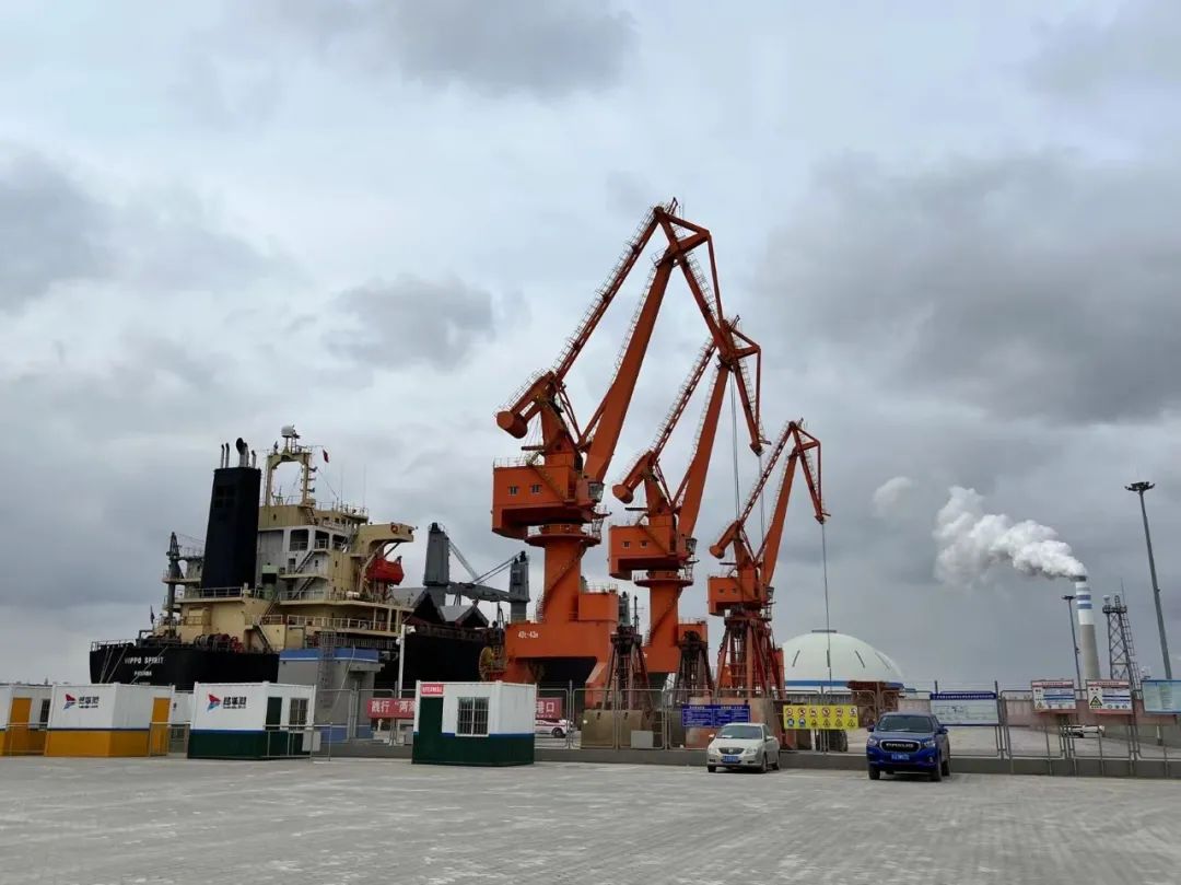 “上面是從印度尼西亞運來的16600噸鎳鐵,正卸貨轉運到江蘇德龍鎳業有限公司。”江蘇鹽城港濱海港開發集團有限公司副總經理楊斌介紹,濱海港深水貼岸,是江蘇沿海建設10-15萬噸級以上航道碼頭距岸最近點。港區海域海床平穩,錨地廣闊,直通大海。年有效作業時間在330天以上,一年四季,大型貨輪進出不息。