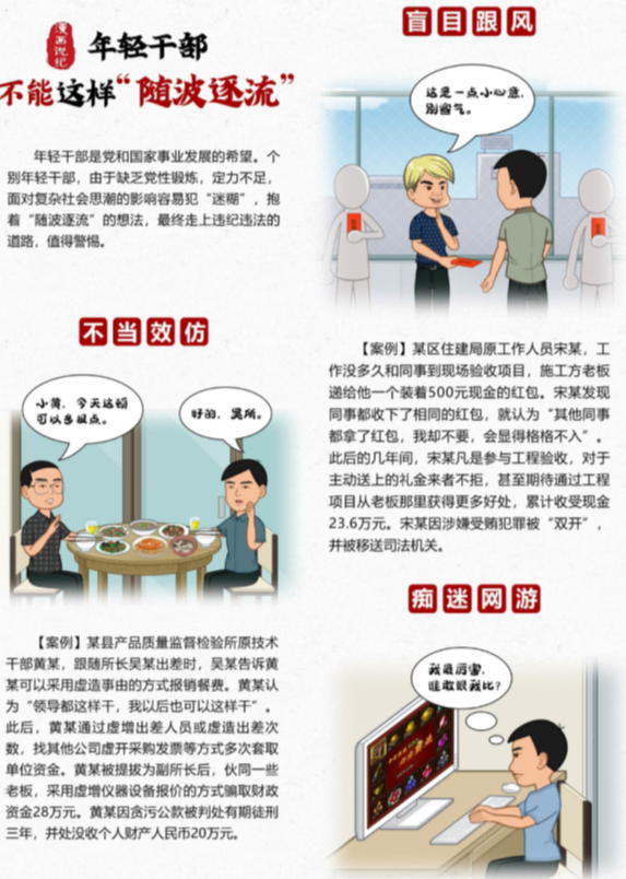 針對當代年輕干部特點,大豐港區緊盯關鍵節點,創新教育方式方法,通過學習《漫畫說紀:年輕干部不應該這樣“隨波逐流”》,警示年輕干部必須抵擋住各種誘惑,牢守住紀法底線,要警字當頭、手握戒尺、慎微慎獨,涵養“風雨不動安如山”的政治品格,永葆“亂云飛渡仍從容”的政治定力,厚植“只留清氣滿乾坤”的高尚情懷,不越紀律底線、不踩紀律雷區,做到心中有戒。