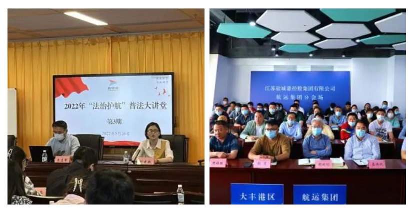 各子(控)公司積極響應集團部署,紛紛利用“學習強企·凝聚硬核”學習日,通過民法典學習手冊、民法典宣傳視頻、民法典讀書活動、律師講座、中國普法網答題活動等形式,組織員工集中學習,擴充知識儲備。大豐港區邀請律師就合同篇以案說法;港口公司送法進一線碼頭管理班組;文旅集團在酒店展播中國普法網《民法典伴你同行》《民法典新時代的圓規尺》等宣傳視頻實業集團深入社區,發放宣傳冊,重點宣傳高空拋物、飼養動物、建筑物區分所有權等法律知識,擔當普法惠民社會責任。