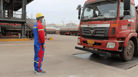 伴隨著手勢,指揮員有條不紊地指揮著車輛