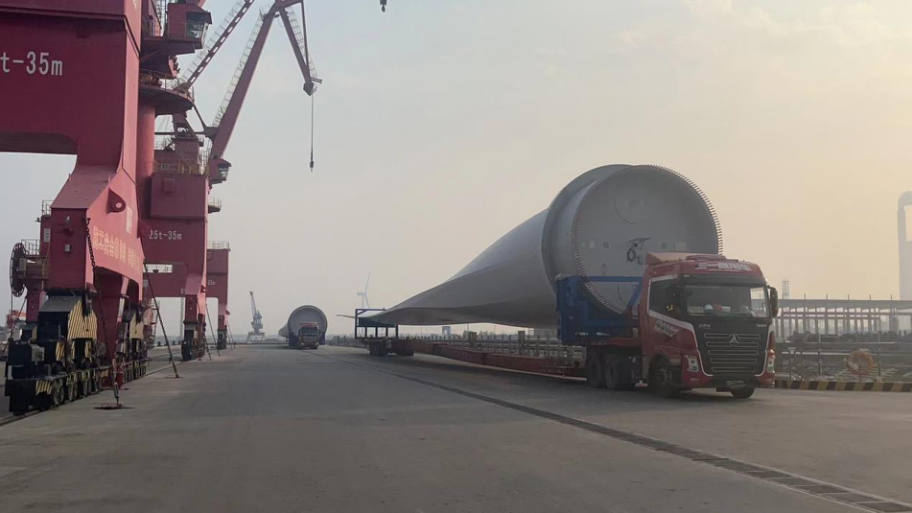 這批風(fēng)電葉片長(zhǎng)107米,是射陽(yáng)港目前已接卸的最長(zhǎng)風(fēng)電葉片。超長(zhǎng)的葉片帶來(lái)了一系列新課題,具體體現(xiàn)在道路運(yùn)輸、港區(qū)內(nèi)陸運(yùn)、碼頭裝卸作業(yè)等方面。射陽(yáng)港區(qū)生產(chǎn)經(jīng)營(yíng)團(tuán)隊(duì)迎難而上,主動(dòng)與當(dāng)?shù)卣块T對(duì)接,及時(shí)解決道路運(yùn)輸障礙問(wèn)題,拆除改造港區(qū)紅門、堆場(chǎng)圍欄等設(shè)施,滿足港區(qū)內(nèi)部轉(zhuǎn)運(yùn)需求;抽調(diào)精干力量組成服務(wù)專班,為客戶提供全程定制化服務(wù);組建裝卸作業(yè)專班,借鑒優(yōu)化百米風(fēng)葉裝卸經(jīng)驗(yàn),制定詳細(xì)作業(yè)方案,從葉片集港、船舶靠泊、場(chǎng)地安排和吊裝作業(yè)等方面做足準(zhǔn)備,安全高效完成首船裝卸作業(yè)工作,打響了“風(fēng)電裝卸服務(wù)”射陽(yáng)港區(qū)優(yōu)質(zhì)品牌。