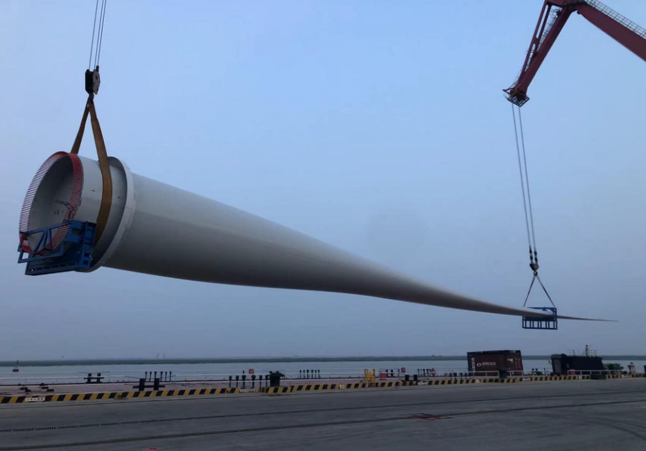 6月16日,射陽(yáng)港區(qū)順利完成了首船107米風(fēng)電葉片的裝卸作業(yè)工作,這是中國(guó)近海岸風(fēng)力發(fā)電場(chǎng)第一套107米發(fā)電機(jī)組葉片,也是射陽(yáng)港區(qū)有史以來(lái)裝卸作業(yè)的最長(zhǎng)風(fēng)電葉片,再次刷新了射陽(yáng)港區(qū)風(fēng)電葉片吊裝紀(jì)錄,標(biāo)志著射陽(yáng)港區(qū)成功躋身百米以上級(jí)風(fēng)電葉片發(fā)運(yùn)港口行列。這次成功裝卸,創(chuàng)造了鹽城港裝卸風(fēng)電葉片長(zhǎng)度新紀(jì)錄,向鹽城港集團(tuán)成立兩周年獻(xiàn)上了一份厚禮。