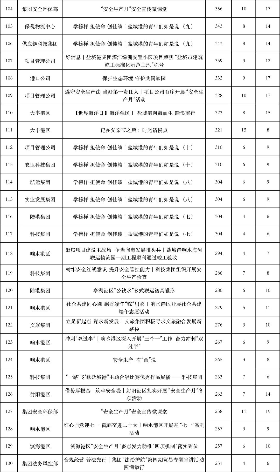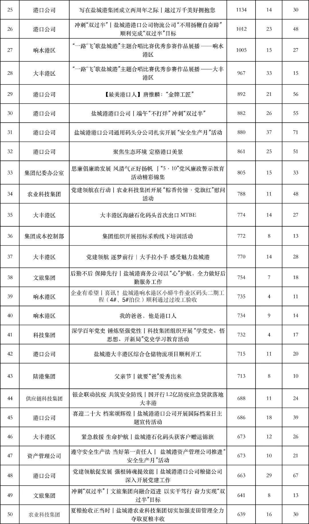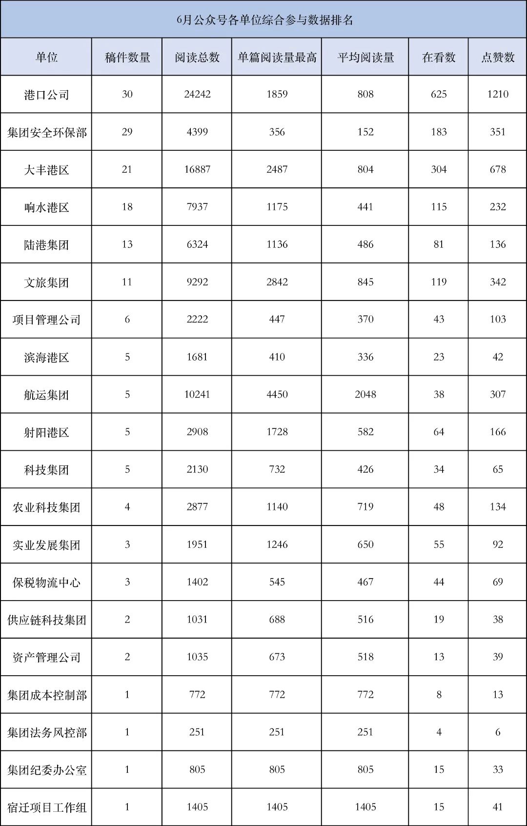 下面,讓我們一起回顧六月份鹽城港集團微信公眾平臺的精彩表現。