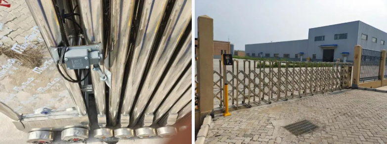 按照海關監管要求,輔建區須獨立于港口作業區外圍。港務公司輔建區內設有污水處理站、物資庫、修理庫等輔助建筑,采用無人值守的伸縮門管理模式。原輔建區伸縮門無自動閉鎖功能,庫內物資存在一定安全隱患,技術組針對伸縮門工作原理圖自行研究,在伸縮門上安裝了限位裝置,同時連接延時啟動裝置,保證了伸縮門在開啟3分鐘后自動實現閉合,有效提升了輔建區的安防能力。