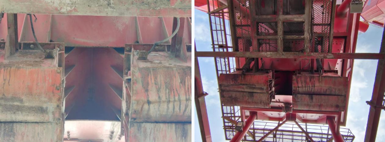 液壓油缸用來控制料斗開閉,每工班需要工作上千次,頻繁的工作加上室外惡劣工況,易出現斗口位置漂移,由于沒有相應的漂移檢測連鎖部件,斗口運作至極限后液壓油缸仍施加推力導致開閉部件卡死損壞。港務公司技術條線針對相關問題,自行研究安裝了漂移反饋信號液壓油撐連鎖裝置,當開口達到限位,連鎖裝置啟動,液壓油缸停止運作,在保障生產順利開展的同時,有效節約了維修成本。