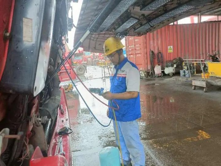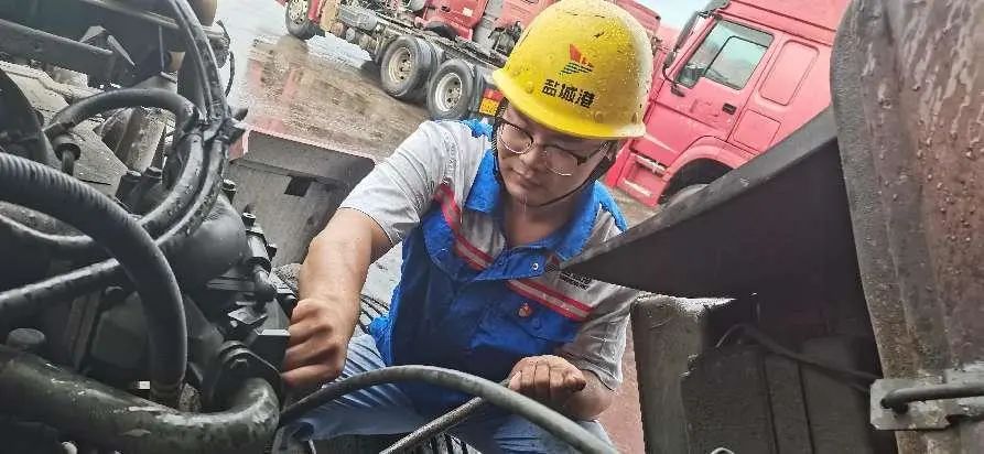 連續(xù)的高溫,讓穿梭于碼頭與堆場的車輛,也會受不住“中暑生病”,出現(xiàn)散熱不暢、空調(diào)不制冷、控制器高溫等故障。為保證碼頭的正常運(yùn)營,陸晨不顧已超40℃的體感溫度,戴上工作手套,拿著他的工具箱,打開已達(dá)60℃的發(fā)動機(jī),用手觸摸每一個(gè)部件來尋找“癥結(jié)”。汗水不斷滑下,工作服也因汗水而浸濕,緊緊貼在身上,但陸晨全然不顧,只一心一意、專心致志為集卡車“把脈問診”。高溫下的時(shí)間總是顯得很緩慢,陸晨擦了檫臉上的汗笑著說:“我工作10年了,剛開始也不適應(yīng),但因?yàn)橄矚g車,慢慢也就習(xí)慣了。”陸晨介紹,除發(fā)動機(jī)外,在密閉駕駛室內(nèi)檢修,也是一大考驗(yàn)。車廂外40℃左右的高溫,駕駛室內(nèi)則完全密閉,很多人是受不了的。“任何一臺集卡車都離不開我們修理工?!标懗空f,“我的任務(wù)就是盡自己最大努力修理車輛,保證碼頭的正常運(yùn)轉(zhuǎn)”。