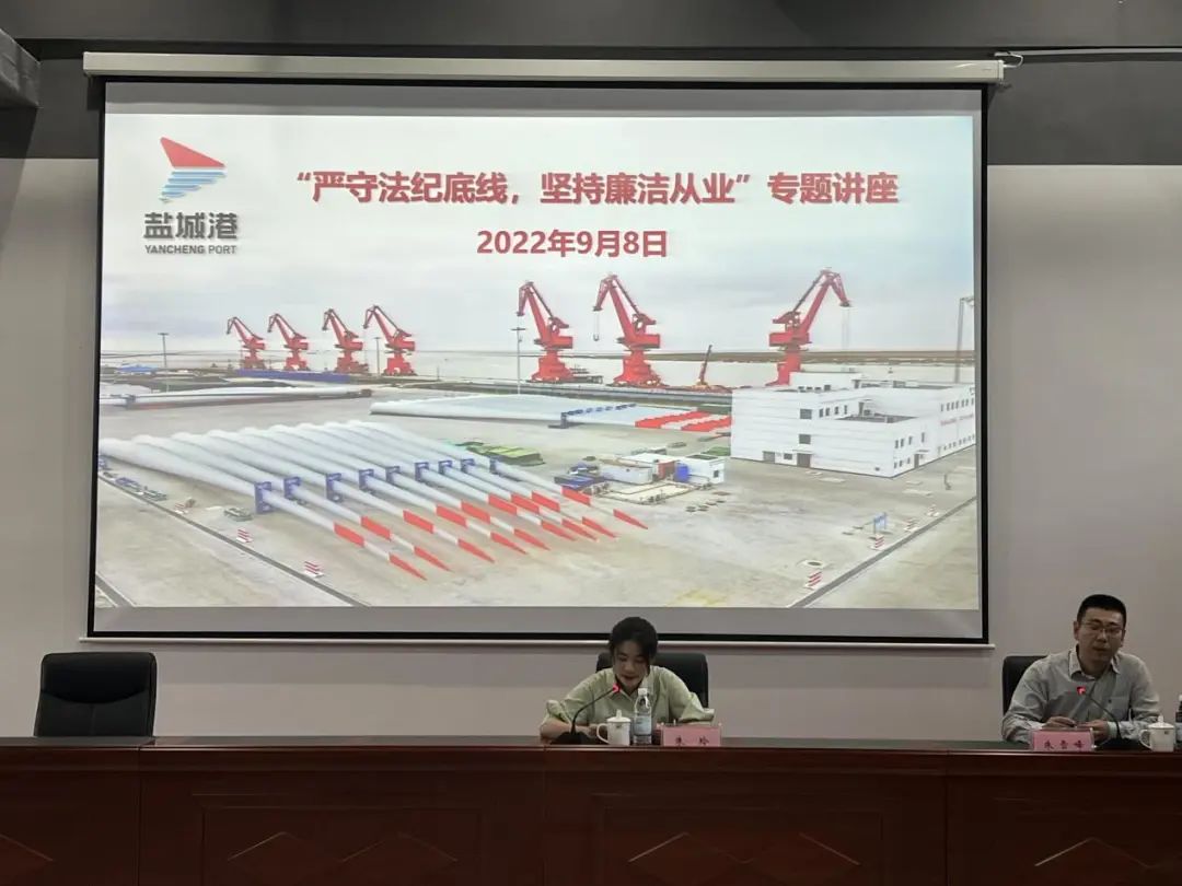 為進(jìn)一步提升港區(qū)全員服務(wù)、廉潔自律意識(shí),防范廉政風(fēng)險(xiǎn),營(yíng)造風(fēng)清氣正的干事創(chuàng)業(yè)氛圍。近日,鹽城港射陽(yáng)港區(qū)邀請(qǐng)射陽(yáng)縣紀(jì)委相關(guān)負(fù)責(zé)同志來(lái)港開(kāi)展“嚴(yán)守法紀(jì)底線,堅(jiān)持廉潔從業(yè)”專(zhuān)題講座。