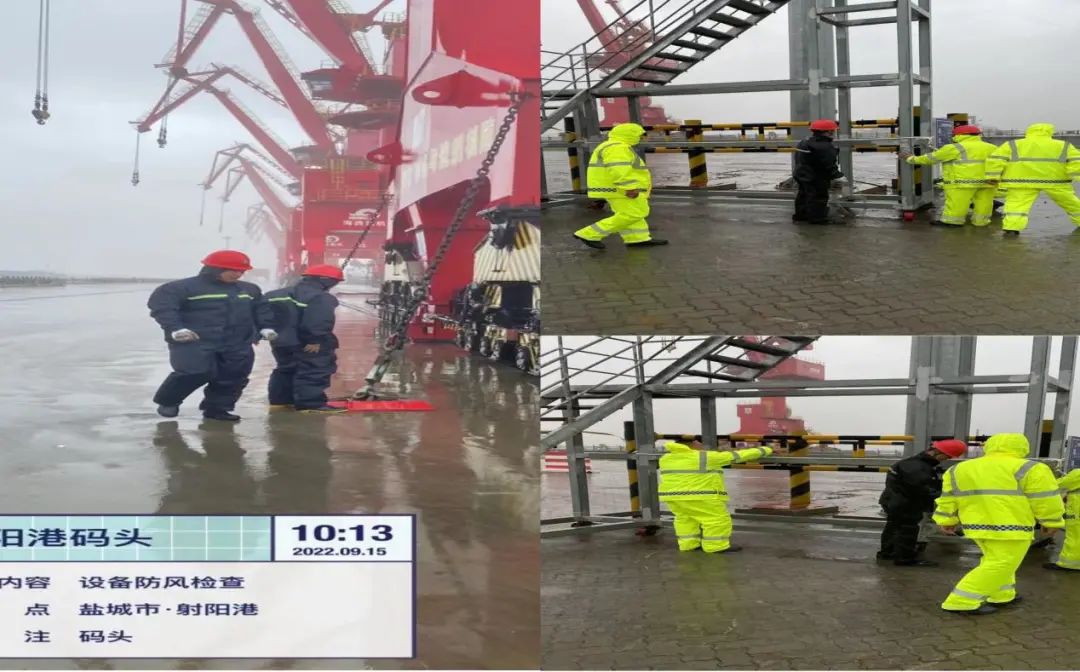 射陽(yáng)港風(fēng)電公司第一時(shí)間停止碼頭作業(yè),并加大對(duì)碼頭面的檢查力度,逐臺(tái)檢查設(shè)備防風(fēng)裝置的完好性,加固門機(jī)錨定,及時(shí)整改現(xiàn)場(chǎng)檢查發(fā)現(xiàn)的問題,時(shí)刻做好應(yīng)戰(zhàn)準(zhǔn)備。