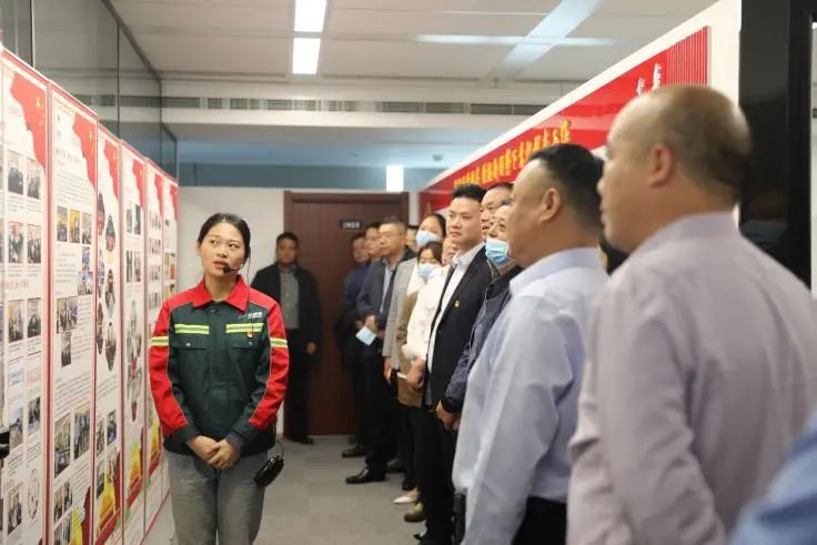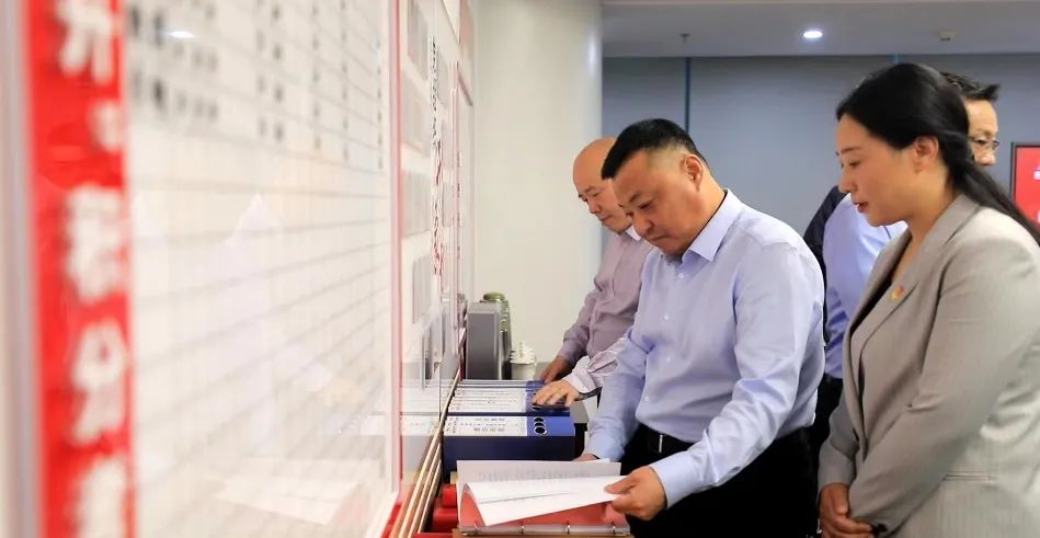 與會人員現場觀摩了陸港集團機關黨支部黨建、群團開展工作亮點展示,詳細了解該支部標準化建設臺賬資料整理、黨建陣地規范化建設情況。