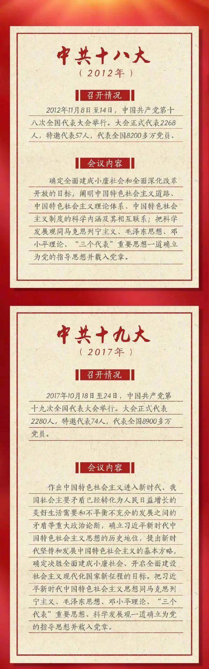 1921年,中國共產(chǎn)黨第一次全國代表大會召開,宣告中國共產(chǎn)黨正式成立。13名平均年齡28歲的年輕人,代表了全國50多名黨員。如今,中國共產(chǎn)黨黨員總數(shù)已超9671萬名。黨的二十大召開在即,九圖速覽中國共產(chǎn)黨19次黨代會“極簡史”,收藏學習!