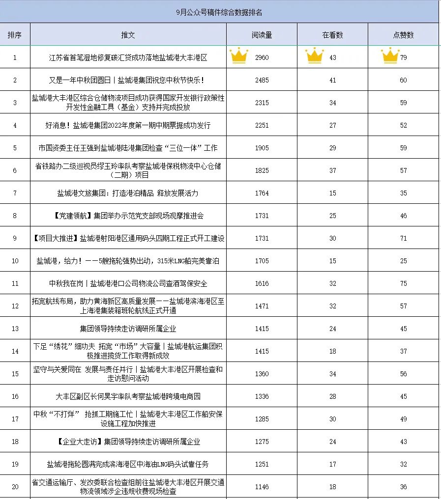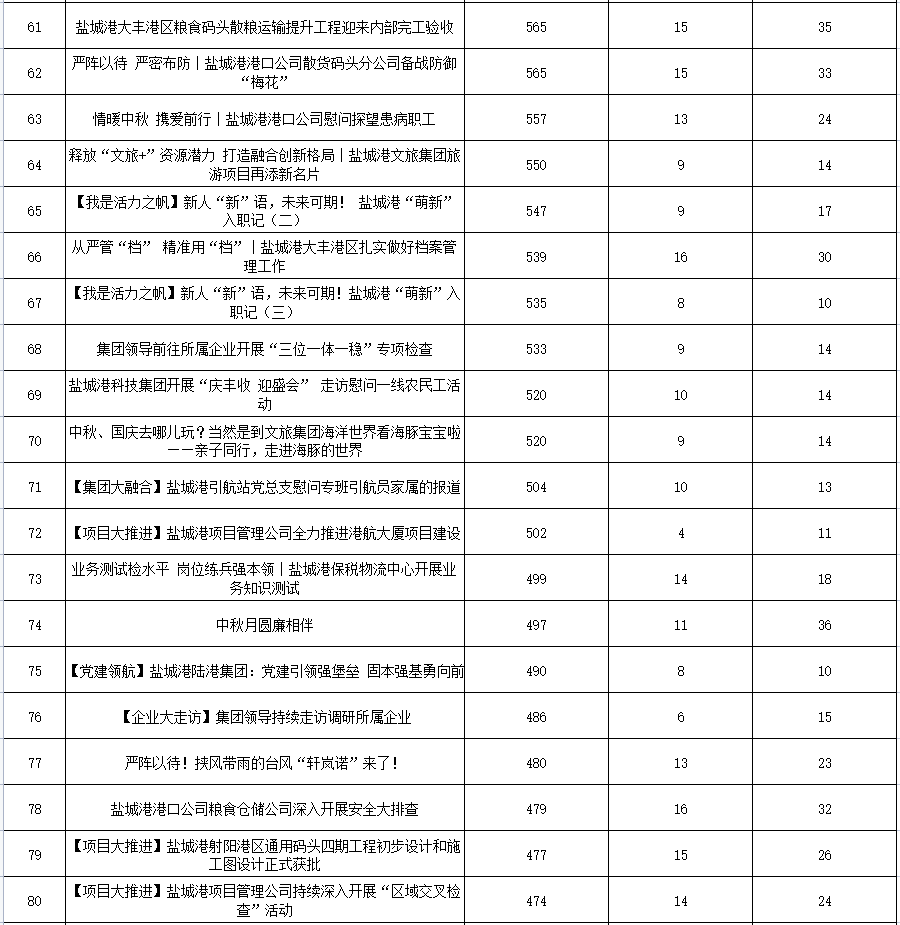 9月,新聞宣傳戰線緊扣集團中心工作,“五大活動”宣傳扎實推進,如火如荼;聚焦中秋等熱點,用心策劃,創新呈現......全方位講好鹽城港故事,傳播鹽城港聲音。