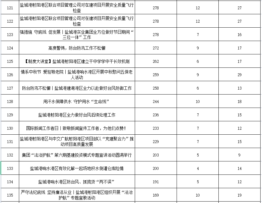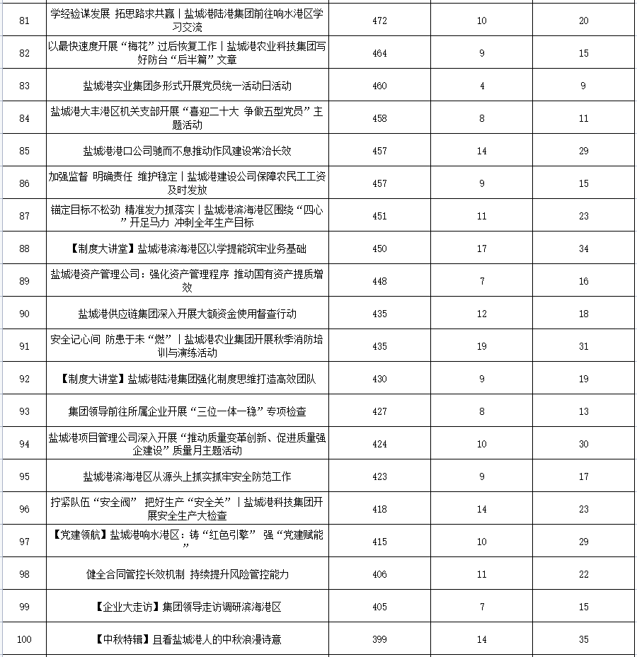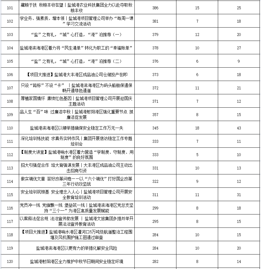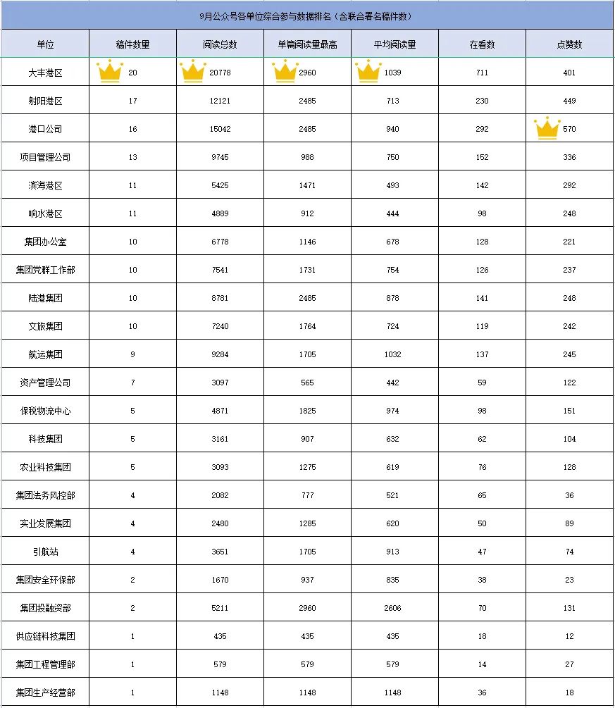 公眾號各單位綜合參與數據排名