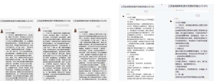 思想的統(tǒng)一引領(lǐng)行動(dòng)的統(tǒng)一。近階段,重點(diǎn)圍繞應(yīng)知應(yīng)會(huì)常識(shí),每天早上九點(diǎn),港區(qū)綜合部專(zhuān)人將摘編好的應(yīng)知應(yīng)會(huì)知識(shí)點(diǎn)發(fā)布到工作群,供所有員工學(xué)習(xí)。內(nèi)容涵蓋領(lǐng)導(dǎo)重要講話、時(shí)政熱點(diǎn)、企業(yè)文化、崗位職責(zé)等,員工結(jié)合自身工作安排進(jìn)行學(xué)習(xí)。員工們紛紛表示,比起自己平時(shí)雜亂學(xué),重點(diǎn)知識(shí)點(diǎn)的匯總學(xué)習(xí)猶如“啟明星”,輕松從“要我學(xué)”轉(zhuǎn)變?yōu)椤拔乙獙W(xué)”,在學(xué)習(xí)中不斷反省自身不足,查漏補(bǔ)缺立行立改,為高效率高標(biāo)準(zhǔn)完成工作夯實(shí)思想根基。