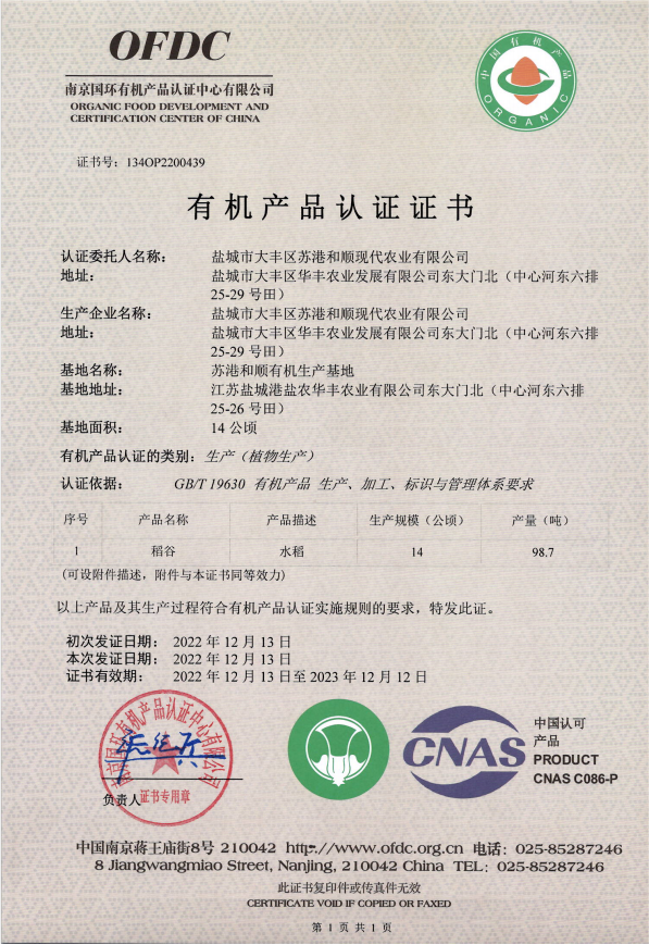 “耗時整整三年,我們終于成功了!”鹽城港鹽農(nóng)循環(huán)農(nóng)業(yè)公司稻谷種植基地負(fù)責(zé)人向我們介紹時難掩激動之情。近日,鹽城港鹽農(nóng)循環(huán)農(nóng)業(yè)公司種植基地產(chǎn)出的稻谷獲得有機(jī)產(chǎn)品認(rèn)證,看似不起眼的小谷粒卻稱出十足的分量。