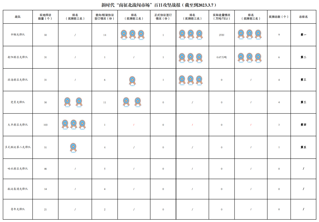 1.累計拜訪客戶數(shù)量523家:其中大豐港區(qū)先鋒隊103家,黨員先鋒隊56家,多式聯(lián)運第二先鋒隊51家,巾幗先鋒隊50家,建湖港區(qū)先鋒隊49家,響水港區(qū)先鋒隊46家,射陽港區(qū)先鋒隊31家,濱海港區(qū)先鋒隊31家,亭湖港區(qū)先鋒隊29家,多式聯(lián)運第一先鋒隊24家,青年先鋒隊21家,阜寧港區(qū)先鋒隊18家,航運集團(tuán)先鋒隊14家。