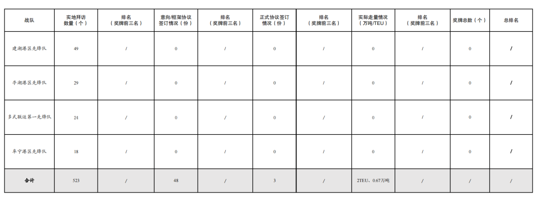 活動開展以來,累計拜訪客戶數(shù)量523家,簽訂意向/框架協(xié)議數(shù)量48份,簽訂正式協(xié)議3份,實際走量0.67萬噸、2TEU。
