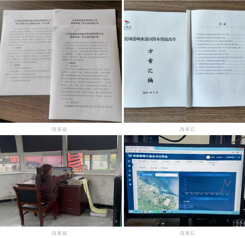 “降本增效”不僅是此次改革期間的重點(diǎn)工作,也是響水港區(qū)以及集團(tuán)全年度的重點(diǎn)工作。通過(guò)深入一線調(diào)研,集團(tuán)戰(zhàn)略規(guī)劃部在充分吸收采納集團(tuán)各部門(mén)意見(jiàn)的基礎(chǔ)上,圍繞關(guān)鍵環(huán)節(jié)深挖降本節(jié)支潛在點(diǎn),形成《鹽城港響水港區(qū)降本增效專(zhuān)項(xiàng)行動(dòng)方案匯編》,通過(guò)11項(xiàng)有效措施全力推進(jìn)響水港區(qū)降本增效工作。通過(guò)優(yōu)化作業(yè)流程,完善勞務(wù)外包模式,預(yù)計(jì)實(shí)現(xiàn)2023年底較2022年單噸一線作業(yè)成本下降5%,節(jié)省約240萬(wàn)維保成本;完成無(wú)人磅房試點(diǎn)改造,預(yù)計(jì)實(shí)現(xiàn)年約42萬(wàn)元人工成本的節(jié)約;完善第三方檢測(cè)服務(wù)樣本庫(kù),實(shí)現(xiàn)項(xiàng)目檢測(cè)成本5%-10%的降低;推進(jìn)設(shè)立招標(biāo)專(zhuān)員,實(shí)現(xiàn)招標(biāo)(自主實(shí)施項(xiàng)目)審批流程節(jié)約8個(gè)工作日,效率提升33%;制定三公經(jīng)費(fèi)控制方案,預(yù)計(jì)年底實(shí)際費(fèi)用支出降幅較2022年達(dá)到10%。