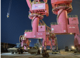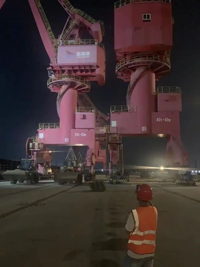 “5#門機(jī)入軌正常”“行走機(jī)構(gòu)壓輪正常”“回轉(zhuǎn)、起升、變幅機(jī)構(gòu)運(yùn)行正常”隨著現(xiàn)場指揮員對講機(jī)里傳來各機(jī)構(gòu)一切正常運(yùn)行的報(bào)告,經(jīng)過10個晝夜的連續(xù)奮戰(zhàn),鹽城港射陽港區(qū)碼頭門機(jī)移位作業(yè)宣告完美收官。