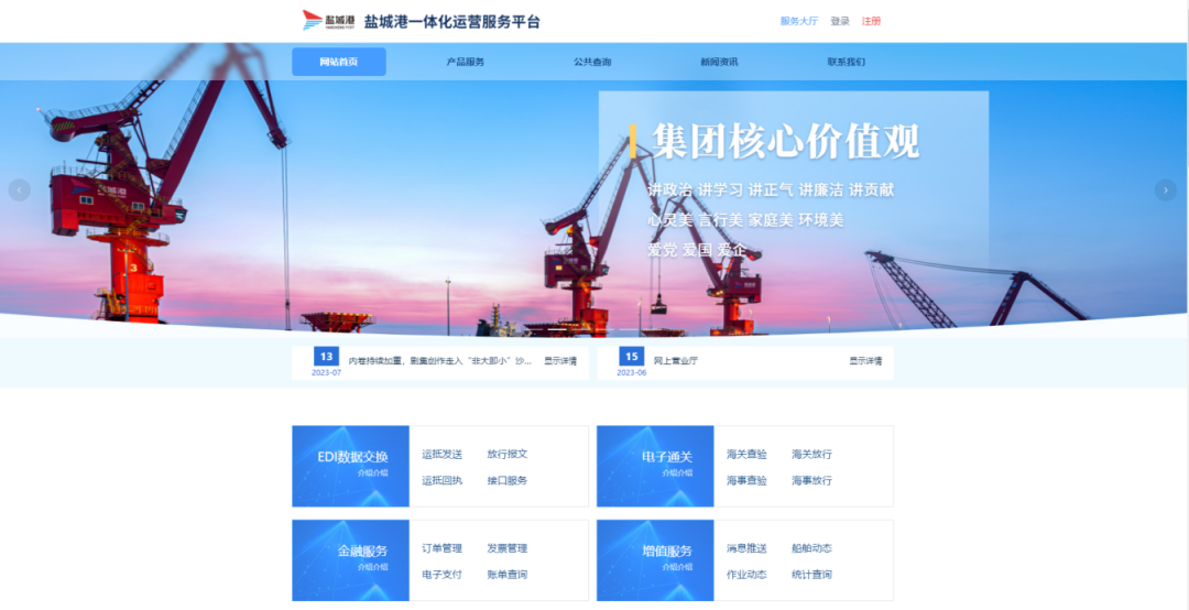 網(wǎng)上營(yíng)業(yè)廳作為“五新示范港”中智慧港建設(shè)的重要環(huán)節(jié),自2023年起,鹽城電子口岸公司根據(jù)航運(yùn)集團(tuán)、濱海港區(qū)實(shí)際業(yè)務(wù)需求,陸續(xù)部署功能模塊,加快推進(jìn)網(wǎng)上營(yíng)業(yè)廳建設(shè),并于近日正式上線。