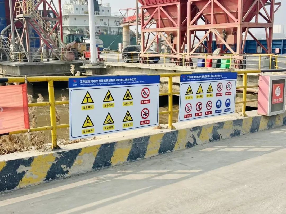 為進一步提升碼頭作業現場安全管理水平,堅持落實“零事故”目標,樹牢生產“紅線意識、底線思維”,響水港區灌江港務分公司在碼頭作業區增設了新的標識標牌,對老舊警示標識牌進行更換,進一步系緊通航“安全帶”,筑牢安全“防火墻”。