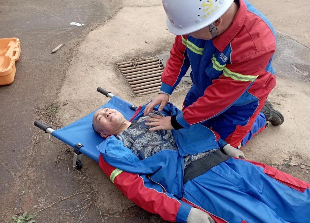 通訊警戒組在安全區(qū)域拉起警戒線,救援組迅速穿戴防護(hù)用品,緊急切斷TK102閥門。